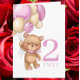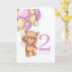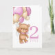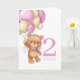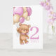 tarjeta de cumpleaños de osito de peluche con globos rosados