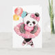 ¡Aquí hay una tarjeta de cumpleaños linda para cualquier niño! La parte frontal presenta un oso panda blanco y negro vestido con un tutú rosa, lazo y zapatillas de ballet. Ella sostiene una cuerda con tres globos de colores brillantes. El interior de la tarjeta tiene campos de texto en gris y azul verde para personalizar o dejar como está. También tiene una segunda imagen de los globos.