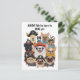 Tarjeta de cumpleaños de la adorable tripulación de perros piratas con perros y gatos lindos vestidos como piratas con bandanas, sombreros y accesorios de cráneos. Una divertida tarjeta de saludo perfecta para amantes de los perros, padres de mascotas y cualquiera que disfrute del humor animal caprichoso. Diseño de alta calidad con el mensaje "¿Tu tesoro? Nuestro fondo de jubilación" en la parte posterior hace que esta sea una sorpresa ideal de cumpleaños. Contenido generado.