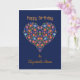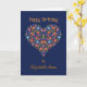 Una tarjeta de cumpleaños para personalizar, con un patrón floral en forma de corazón en un fondo azul profundo, inspirado en el arte folclórico de Europa del Este. Parte de la colección "Corazón popular" de Posh & Painterly.