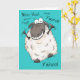 Esta oveja Personalizado tonta es "oveja" emocionada— muy emocionada- por el cumpleaños de alguien. La oveja dibujada a mano está saltando de arriba a abajo sobre un fondo azul verde azulado con texto negro que retransmite su emoción.