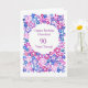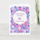 Una tarjeta de felicitación de cumpleaños muy bonito, totalmente personalizable, con un patrón floral de flores rosas, azules y violetas, de un collage de papel pintado a mano, de Judy Adamson. El interior se deja en blanco para tu propio mensaje.