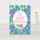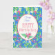 Una tarjeta de cumpleaños floral de bonito para una hermana, con un patrón de Naranja de mofa y Weigela sobre un brillante fondo azul. El diseño es de una acuarela pintada a mano y la inscripción es de un color rosa profundo y se puede personalizar el mensaje interior.