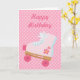 Tarjeta de cumpleaños de puntos rosados Rollerskat