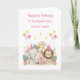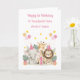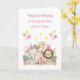 Esta tarjeta de primer cumpleaños con acuarela rosa es adecuada para un solo niño o gemelos. El diseño incluye hojas de safari, globos de cumpleaños, estrellas, una jirafa, un elefante con un sombrero de fiesta y un león con un sombrero de fiesta. Todo el texto es totalmente personalizable.