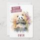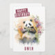 Una linda tarjeta de cumpleaños con un panda florido celebrando la primavera en la parte delantera con "Feliz Cumpleaños" en una letra en negrita blanca y con mayúsculas. Personalice la parte delantera agregando su(s) nombre(s). La parte posterior de la tarjeta contiene espacio para el mensaje escrito a mano o con tipeo.