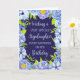 Tarjeta de cumpleaños para la hijastra con flores primaverales azules de bonito y verso reflexivo.