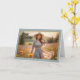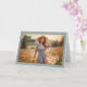 Esta tarjeta de cumpleaños presenta una escena pintoresca y serena de una mujer que disfruta de un momento pacífico en un campo de flores iluminadas por el sol. La mujer, vestida con un vestido florido y un gorra de gran tamaño, exuda un sentido de gracia y belleza natural. La luz tenue del sol crea un ambiente cálido y acogedor, dando un suave matiz a las floridas flores silvestres y a las colinas onduladas del fondo. La carta está enmarcada con elegancia con un delicado borde decorativo en tonos dorados, lo que aporta un toque refinado al conjunto. El mensaje "Feliz Cumpleaños" se coloca en la esquina superior izquierda en un guión elegante y fluido, complementando el tema suave y edificante de la tarjeta. Esta tarjeta seduciría a los clientes que busquen una manera reflexiva y encantadora de celebrar el cumpleaños de un ser querido, especialmente para aquellos que aprecian la naturaleza, la tranquilidad y la elegancia femenina. Capta un momento de calma y alegría, lo que lo hace una elección perfecta para expresar sentidos deseos de cumpleaños de una manera hermosa y relajante.