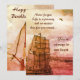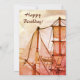 Tarjeta de cumpleaños que expresa a tu ser querido que no importa cuán lejos esté, está en tu corazón. Tarjeta de seres queridos a un ser querido. "Feliz cumpleaños" escrito en la parte posterior con un barco en el mar que representa la parte delantera y trasera.