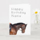 Tarjeta de cumpleaños con el cierre de un hermoso caballo de la bahía sobre un fondo blanco brillante con una fuente de estilo Art Deco. Edite fácilmente el texto de la plantilla en el frente y dentro de esta tarjeta para personalizar la tarjeta con su propio mensaje. Elegante y en tendencia tarjeta minimalista para enviar a una persona de caballo en su cumpleaños. ¡Gracias por ver mis diseños!