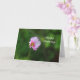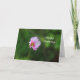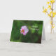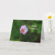 La imagen fotográfica de un wildflower rosado del cosmos en un fondo del follaje verde suavemente borroso imprimió en una tarjeta de cumpleaños.