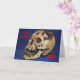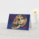 Un viejo cráneo con un fondo azul que está en una tarjeta de cumpleaños.