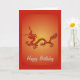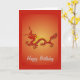 Tarjeta de cumpleaños del dragón rojo y dorado chi