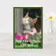 Este naranja tabby cat está tan contento de estar fuera, explorando su reino. ¡Incluso está sonriendo! Dulce tarjeta para cualquiera que ame a los gatos.