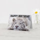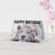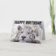 TARJETA DE CUMPLEAÑOS DEL MAGNÍFICO TIGRE BLANCO DURMIENDO. DENTRO SE LEE: COME PASTEL DE CUMPLEAÑOS. DORMIR. REPETIR.
