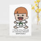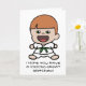 La tarjeta linda celebra un cumpleaños de una manera de retroceso con el pie de la diversión. Ofrece a un muchacho lindo del dibujo animado que lleva una correa verde del karate. Usted puede modificar el texto para requisitos particulares en el frente y el interior.