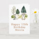 Tarjeta de cumpleaños rústica con adorables lobos y árboles. Perfecta para un cumpleaños de primavera o verano. Las palabras se pueden cambiar para adaptarse a tus propios detalles o requisitos