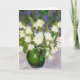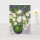Una tarjeta de cumpleaños con un original pintura de color pastel de aceite de una jarra verde llena de fragante Naranja de la Maqueta Flagrante Blossom y azul Ceanothus.