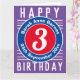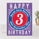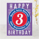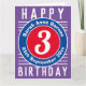 Feliz cumpleaños. Colores brillantes y diseño audaz. Tarjeta de cumpleaños del niño. 3 años.