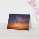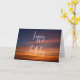Una sencilla pero hermosa tarjeta de cumpleaños de atardecer con una fuente de escritura y la vista del cielo del atardecer junto al mar.