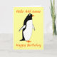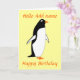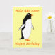Un pingüino lindo. Cambie el nombre en el frente, usted puede también cambiar la ocasión. Añada sus nombres y mensaje adicional dentro. Tarjeta completamente adaptable, con blanco o fondos coloreados. Pingüino en fondo amarillo.