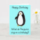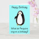 ¡Envíe un pequeño humor del pingüino con esta tarjeta de cumpleaños graciosamente de Sr. Penguin!