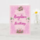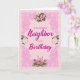Una bonita tarjeta de cumpleaños para un vecino. Una elegante tracería en rosa de los cuatro rosas rosadas. El fondo es un patrón de flores de color rosa pálido. Una tarjeta encantadora para enviar a una vecina en su cumpleaños.