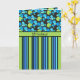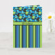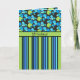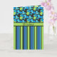 Una tarjeta de cumpleaños de moda para personalizar, con un patrón de mezcla de las franjas de tumbona, en equipo con un patrón de luna azul en verde neón, turquesa y verde esmeralda sobre un fondo negro. Parte de la gama de "Blue Moons" de Posh & Painterly.