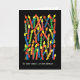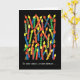Una carta de cumpleaños alegre con muchas velas coloridas sobre un fondo negro, de un collage de papel pintado a mano de Judy Adamson.