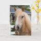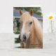 Esta divertida tarjeta presenta un caballo Haflinger sacando la lengua en un corral de la granja. Foto de Robin Craig.