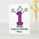 Dibujo animado lindo de una niña pequeña sonriendo Número 1. La tarjeta dice 'Feliz cumpleaños número 1'. Imagen divertida y feliz de un numeral para un niño de un año. El personaje de dibujos animados está saludando. Envíe esto a esa niña para su primer cumpleaños. La tarjeta tiene un fondo blanco pero es fácil editar esto a un color diferente. Personalice fácilmente esta tarjeta editando el texto de la plantilla en la parte frontal y interior. ¡Gracias por ver mis diseños!