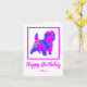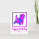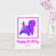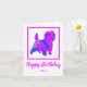 La silueta de Cairn terrier en un loco tópico abstracto rosa caliente y azul brillante moderno. El divertido mensaje de cumpleaños dentro puede cambiarse a lo que quieras. Personaliza con el nombre debajo del sentimiento de Feliz Cumpleaños.