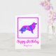 Silhouette de perro collie borde en un loco color rosa caliente y azul brillante moderno patrón abstracto. El divertido mensaje de cumpleaños dentro puede cambiarse a lo que quieras. Personaliza con el nombre en la parte delantera.