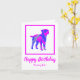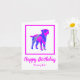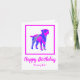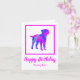 Silueta de perro de borde terrer en un loco color rosa caliente y azul brillante moderno patrón abstracto. El divertido mensaje de cumpleaños dentro puede cambiarse a lo que quieras. Personaliza con el nombre en la parte delantera.