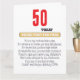 Graciosa tarjeta de poema de cumpleaños número 50 para mandarla a cualquiera para celebrarla cuando cumpla sesenta años. Para un niño de 50 años con buen sentido del humor y una simple prueba de orina para revisar sus necesidades básicas. Personalizar la tarjeta con la edad y el mensaje.
