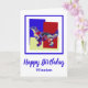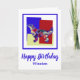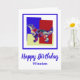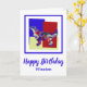 Tarjeta de cumpleaños dorada Perro Rojo Azul