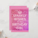 La corona rosa encima de los hermosos destellos rosas y el fondo rosado con letras rosas también los destellos rosas dan impulso a la carta