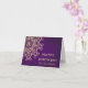 Una hermosa tarjeta de cumpleaños de color púrpura amatista y dorado con un patrón de medallón de sari ornamental exótico y étnico de lujo y sofisticado de inspiración india con un diseño floral y de ráfaga de sol de loto. Esta elegante y hermosa tarjeta de cumpleaños moderna de estilo indio tiene un tema y aspecto formal de noche árabe de Asia Oriental, Indonesia y/o Marruecos o Aladdin. Diseño © Chrissy H. Studios, LLC. Todos los derechos reservados.