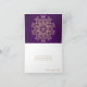 Una hermosa tarjeta de cumpleaños púrpura amatista tonificada en joyas y dorada con un patrón de medallón de sari ornamental de lujo étnico y exótico inspirado en la India con un diseño floral y de ráfaga solar de loto. Esta elegante y hermosa tarjeta de cumpleaños moderna de estilo indio tiene un tema y aspecto formal, de Asia Oriental, indonesio y/o árabe marroquí de las noches de Aladino. Diseño © Chrissy H. Studios, LLC. Todos los derechos reservados.