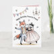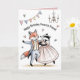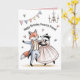 Un zorro y un Badger bailando - vestido con ropa estilo Regency, una sofisticada tarjeta de cumpleaños para tu amigo.