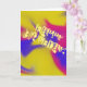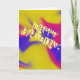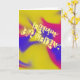 Tarjeta de bienvenida totalmente personalizable con una colorida mancha de melocotón, amarillo y púrpura y el mensaje "¡Feliz cumpleaños!" en la parte delantera de la tarjeta. Dentro de la tarjeta puedes escribir tus propios mensajes. El mensaje en la parte delantera también es completamente personalizable - elige tu propio mensaje, cambia las fuentes, incluso puedes cambiar el fondo como quieras.