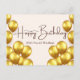 Tarjeta de cumpleaños feliz con globos de oro