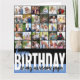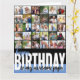 Crea tu propia gran tarjeta de cumpleaños feliz. La plantilla de la foto está lista para que añadas 31 de tus fotos favoritas, 30 de las cuales se muestran en formato cuadrado/instagram en un sencillo collage de fotos de estilo cuadrícula y la principal está en formato de retrato que se puede enmarcar por dentro. La parte delantera de la tarjeta de cumpleaños está escrita con tipografía y escritura de pincel de tamaño excesivo. Actualmente se lee "feliz cumpleaños de mi impresionante papá" con estilo de bloques de color en azul, negro y blanco. Puede editar el texto personalizado en la parte delantera y también puede personalizar el saludo en su interior.
