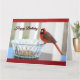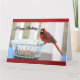 Un hermoso cardenal rojo sentado en lo alto de un tazón de cristal, lleno de semillas, trae deseos para un "cumpleaños feliz". El versículo interior trae deseos de felicidad y bendiciones.