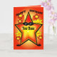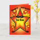Diseño gráfico de una estrella superhéroe brillante en una tarjeta de felicitación Feliz Cumpleaños. La tarjeta tiene plantillas de texto para su personalización.