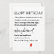 ¡Celebra el día especial de tu marido con este diseño de "FELIZ CUMPLEAÑOS" elaborado con gusto! Con un sincero poema que expresa su amor y aprecio, esta carta es la manera perfecta de expresar lo mucho que significa para usted. Las conmovedoras palabras capturan la esencia de su relación, resaltando el vínculo que usted comparte como mejores amigos y socios. Con un amplio espacio para su mensaje personal, esta tarjeta será un regalo muy preciado en los años venideros. ¡Haga inolvidable su cumpleaños compartiendo su amor y gratitud de esta manera especial!