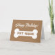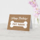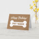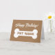 Tarjeta de cumpleaños feliz para perro mascota con un lindo hueso grande. Fondo de color marrón o personalizado. Personalice con el nombre y el mensaje del mascota en el interior. Tarjeta de saludo divertida para los amantes de los animales.