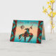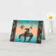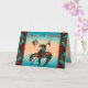 ¡Personaliza esta única tarjeta de cumpleaños "única en su tipo" Fin del camino! Cuenta con un indio Fin del camino y un caballo en un fondo de puesta de sol turquesa y naranja... rodeado de bordes turquesa, negro y naranja. ¡"Feliz cumpleaños número 50"!