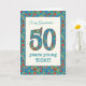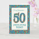 Una tarjeta de cumpleaños específica para la edad de bonito para una abuela de 50 años, con el número 50 y la frontera llena con un colorido patrón floral retro en un fondo verde azulado. El patrón floral forma parte de la colección "Granny Print" de Posh & Painterly, de un collage de papel pintado a mano de Judy Adamson. Este diseño se adaptará a todos los tamaños de las tarjetas de felicitación.