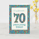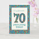 Una tarjeta de cumpleaños específica para la edad de bonito para una abuela de 70 años, con el número 70 y la frontera llena con un colorido patrón floral retro en un fondo verde azulado. El patrón floral forma parte de la colección "Granny Print" de Posh & Painterly, de un collage de papel pintado a mano de Judy Adamson. Este diseño se adaptará a todos los tamaños de las tarjetas de felicitación.